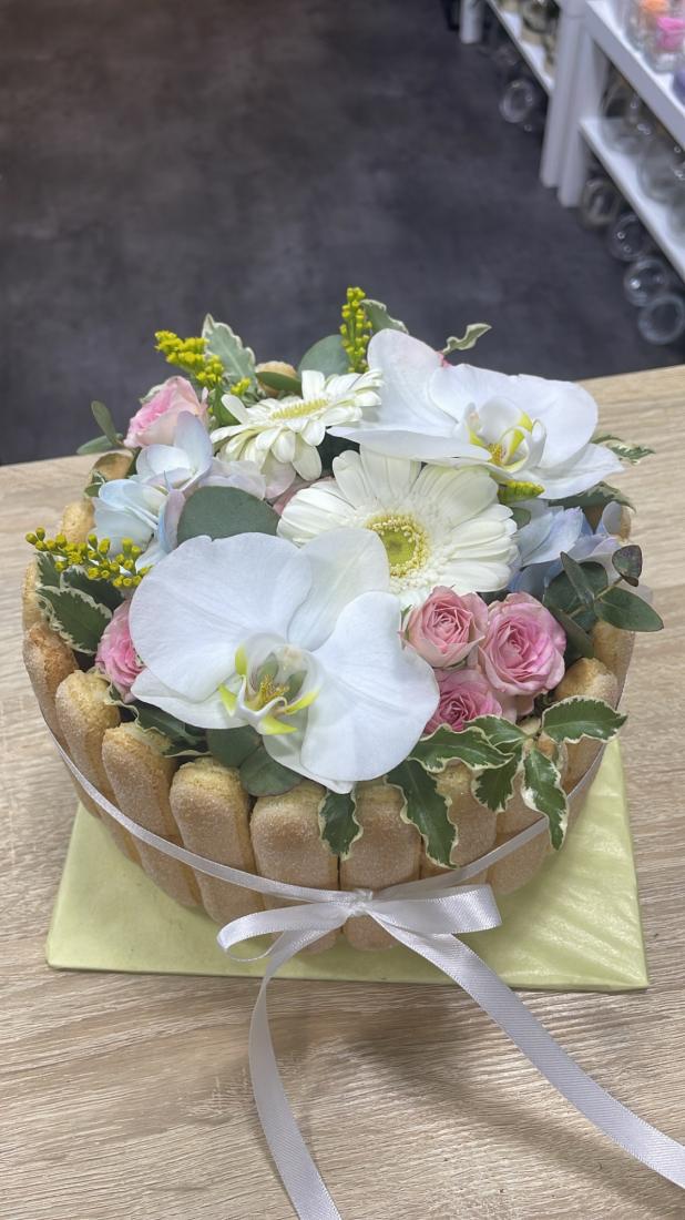 charlotte aux fleurs ; couleur déclinable (orange,jaune,rose,blanc...)